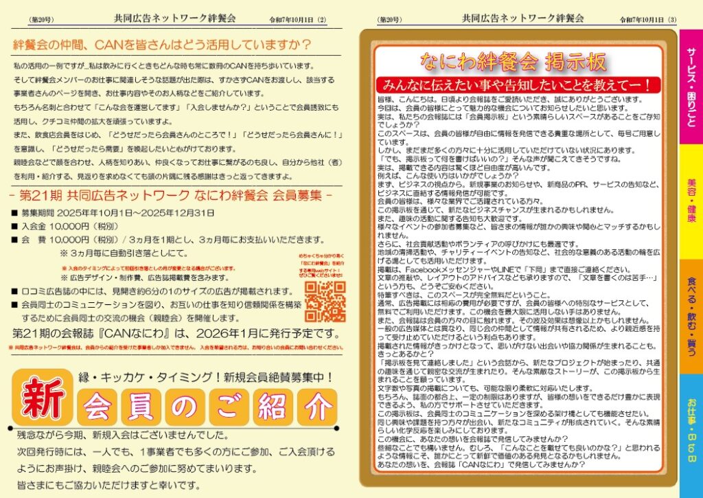 広告誌『CANなにわ』は、3ヶ月に1度、A4(見開きA3)サイズ を発行(1月・4月・7月・10月)。