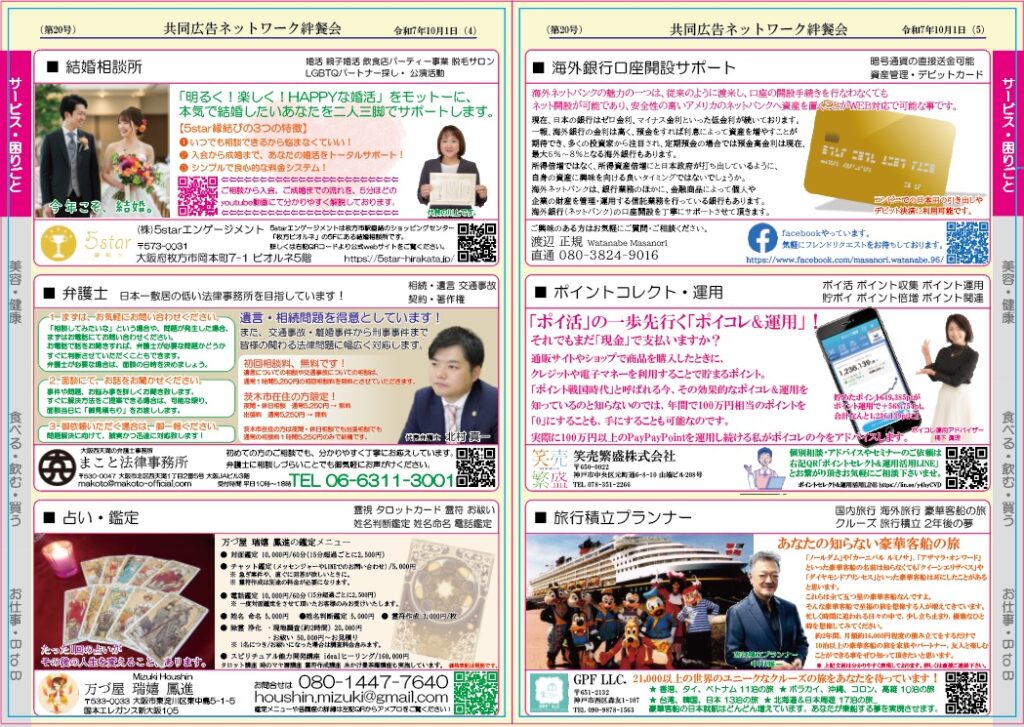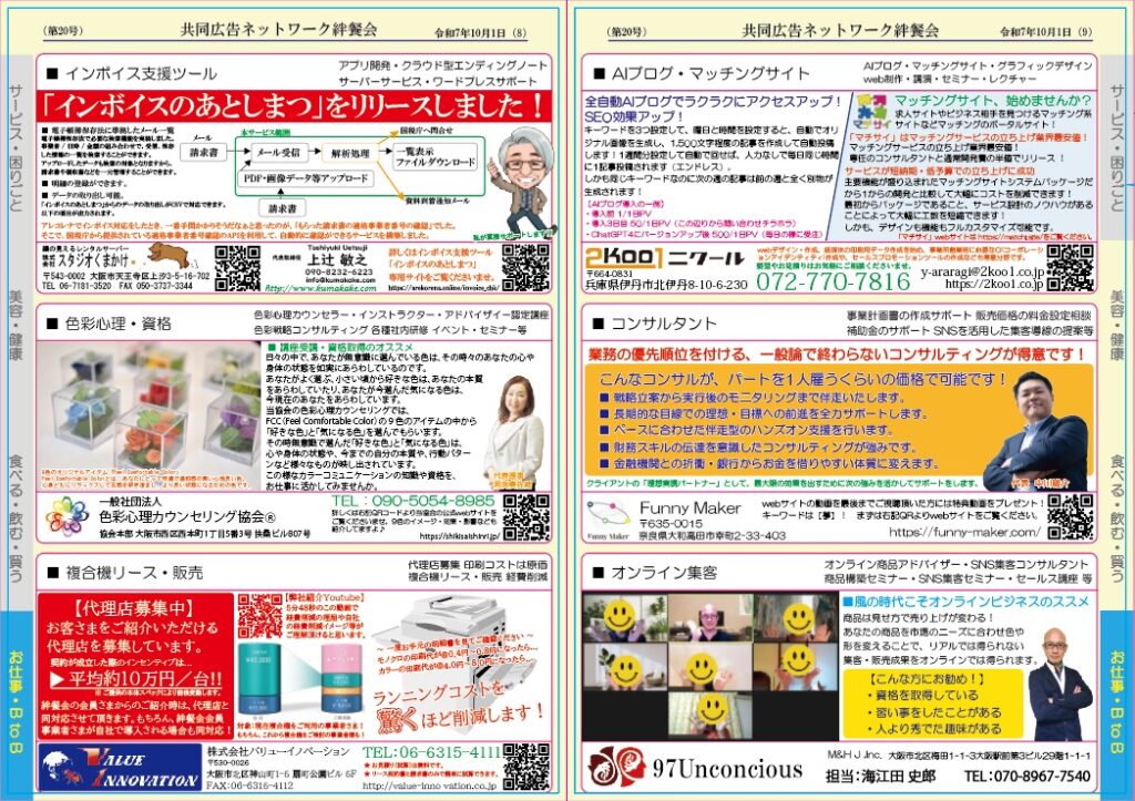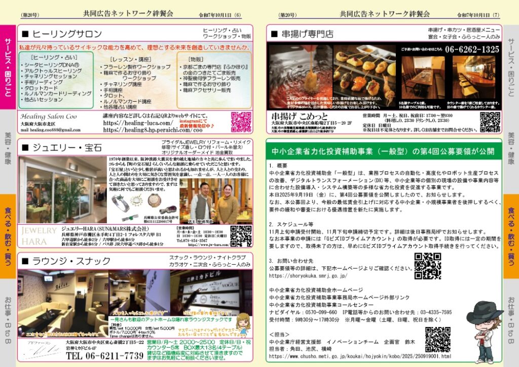 大阪市内に拠点を置く事業者、または、大阪市を商圏とされる事業者が、会員相互に会員事業者を紹介しあう共同広告のグループです。